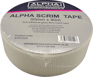 Alpha Drywall Scrim Tape is a self-adhesive fibreglass mesh plasterboard joint tape for strength and durability for less cracking.